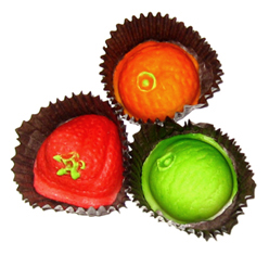 If you love the sweet taste of almond, indulge in our marzipan fruits. These colorful fruits brighten any desert table