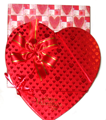 This beautifully wrapped heart shaped box contains our signature collection of quality gourmet chocolates including both milk and dark chocolate truffles, creams and more chocolate delights! This box has a beautiful ribbon on the cover. This is an excellent choice for sampling the best of our chocolate. |